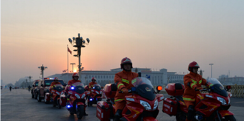據(jù)報(bào)道 北京天安門(mén)配置新型消防摩托消防裝備。