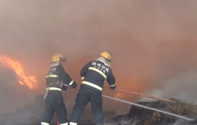 江蘇省揚(yáng)州市一處堆放竹條的倉(cāng)庫(kù)突然起火,風(fēng)干的竹條大面積燃燒,濃煙籠罩,當(dāng)?shù)叵啦块T(mén)接警,立即前往撲救。